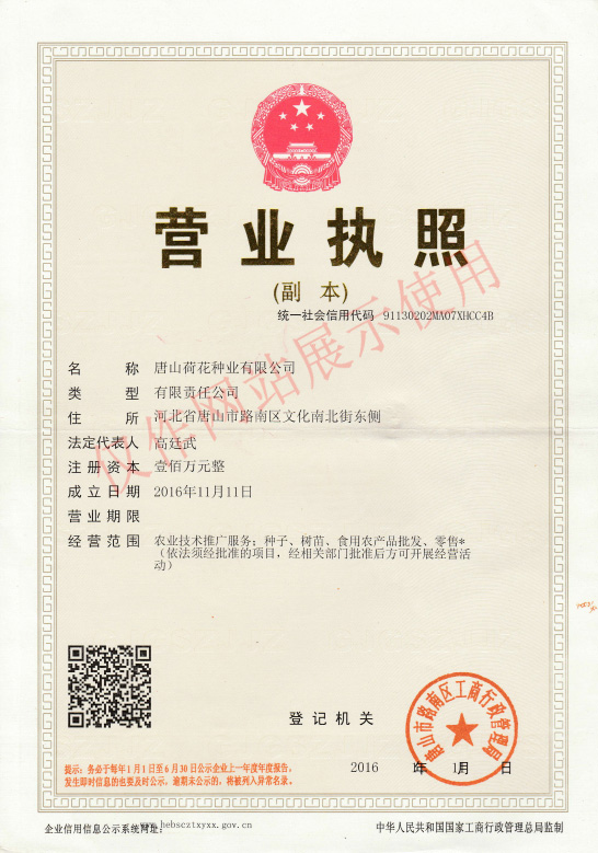 唐山荷花種業(yè)有限公司始創(chuàng)于1984年,一直秉承“科技為先,誠(chéng)信為本”的發(fā)展指導(dǎo)戰(zhàn)略,注冊(cè)商標(biāo)“荷花”牌,經(jīng)過(guò)三十多年的發(fā)展,建立了從親本選育、試驗(yàn)示范、生產(chǎn)檢驗(yàn)、精選加工、推廣銷售及農(nóng)業(yè)技術(shù)咨詢一體化的經(jīng)營(yíng)體系,目前擁有試驗(yàn)基地、繁育基地、制種基地、及規(guī)模化種子冷貯藏庫(kù),完善了由科研、檢驗(yàn)、生產(chǎn)、銷售各個(gè)配套環(huán)節(jié)。荷花牌系列種子正是我們?cè)趫?jiān)持“誠(chéng)信、品質(zhì)、開拓、創(chuàng)新”的企業(yè)精神下打造的種子品牌,如今,在全國(guó)已形成強(qiáng)勢(shì)品牌效應(yīng),是一個(gè)值得信賴與具有一定影響力的種子品牌,在全國(guó)廣大用戶中贏得了良好的口碑和信譽(yù)... ...